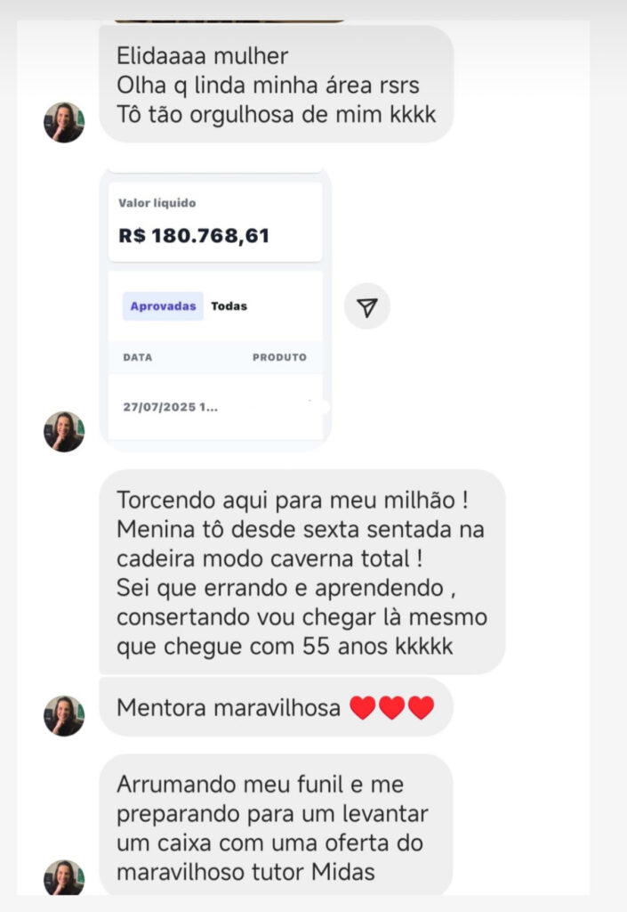 • Resultados apresentados por alunos são reais, porém individuais — variam conforme dedicação, estratégia, execução e contexto; não constituem promessa nem garantia de ganhos, faturamento ou qualquer resultado específico.